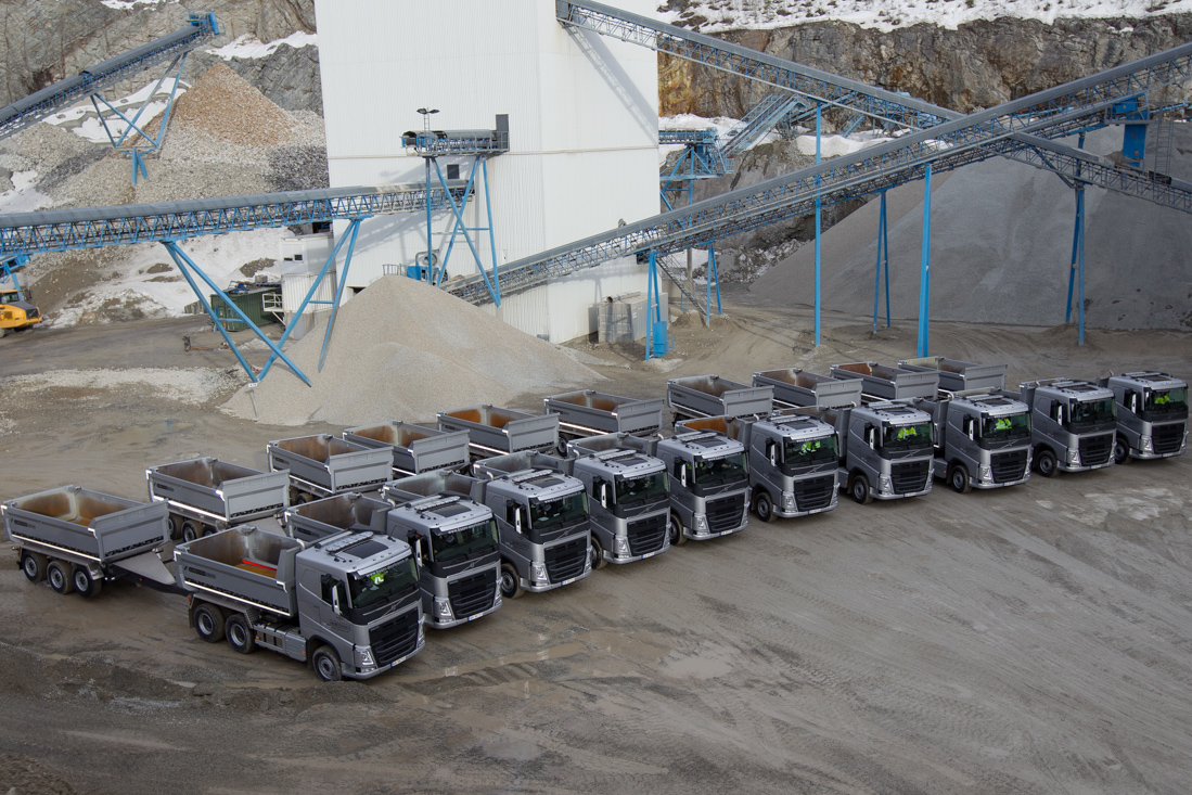 Ti komplette tippvogntog levert på èn gang. For Volvo var det en stor leveranse. For entreprenøren er det et helt nytt virksomhetsområde.