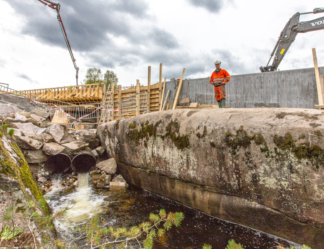 – Den brureisen måtte vi i alle fall satt bort til underentreprenør. Det var ingenting å sette brureisen på, så den måtte ha stått på et stillas midt i bekken. Det hadde vært et alternativ å fundamentere på store bjelker ute på sidene av langkaret på den ene siden. Men det hadde krevd mobilkran for både montering og demontering. Nå er det bare gravearbeid, plukke ut rørene og renske bekken når vi er ferdige, sier Solheim.