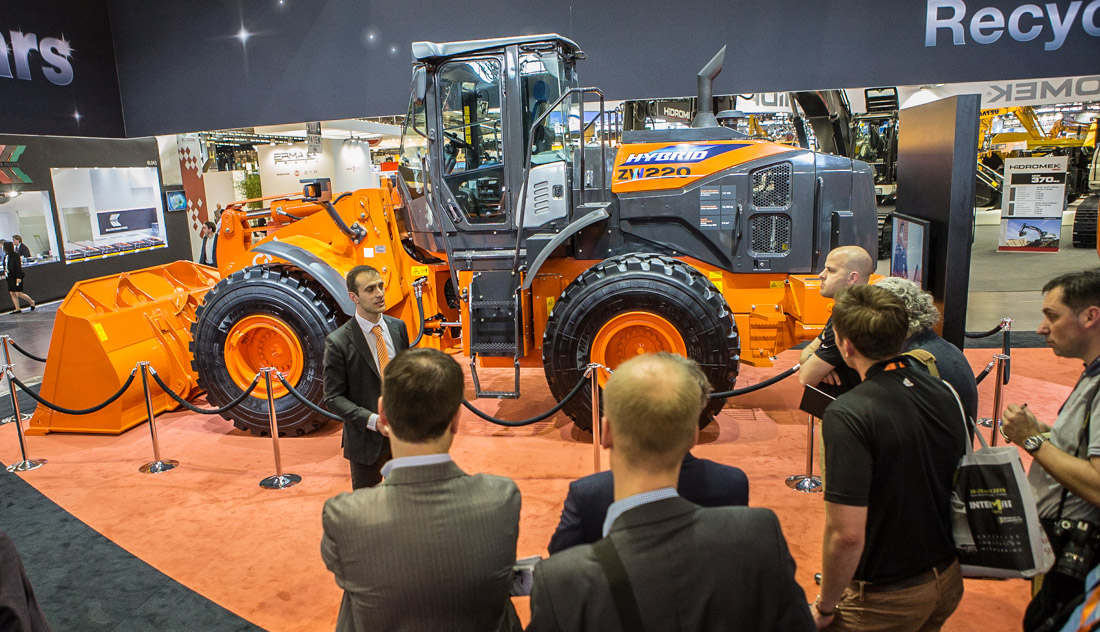 En hybridversjon av 18 tonns-hjullasteren ZW 220 var en av stjernene på Hitachis show på Intermat-messen.