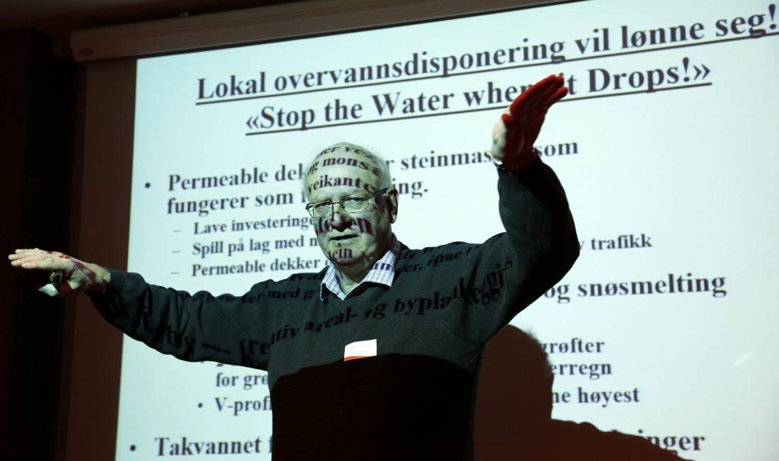 – I dag lønner det seg ikke for utbygger å ta hensyn til overvannsdisponering. Det er rett og slett ingen økonomiske insitamenter for overvannshåndtering. De som femdobler avrenningen ved å utvikle grønne områder til tette flater betaler ingen ting for dette. Vi er nødt til å få et overvannsgebyr i Norge, slik det er i Tyskland og USA, og som er ferd med å innføres i Sverige og Danmark, slo han fast.
