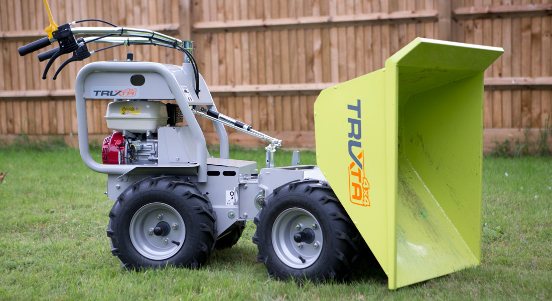 Truxta 4×4 er midjestyrt og drives med bensin, diesel eller strøm. Noen kaller den dumper, andre mener det er en trillebår med motor.