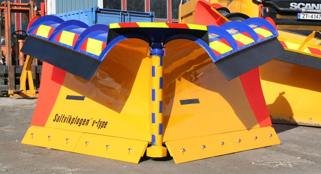 BJERKVIK: Saltvik Mek AS har i samarbeid med svenske SSAB laget en ny V-formet snøplog.