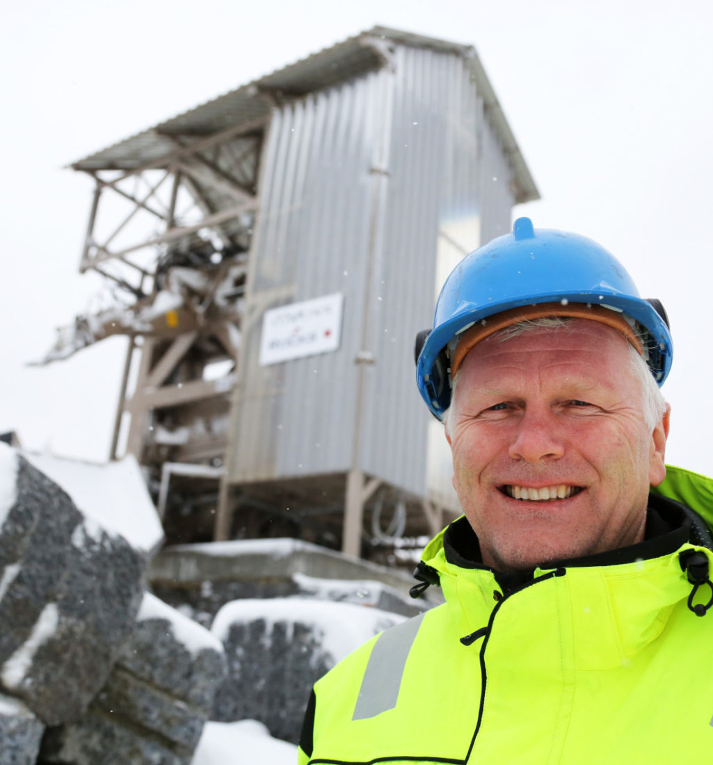 Hovedbildet: Med den voldsomme steinsplitteren Mjølner (bak), akter daglig leder i Rocks of Norway, Torger Lingelem, å ta opp kampen mot kineserne.