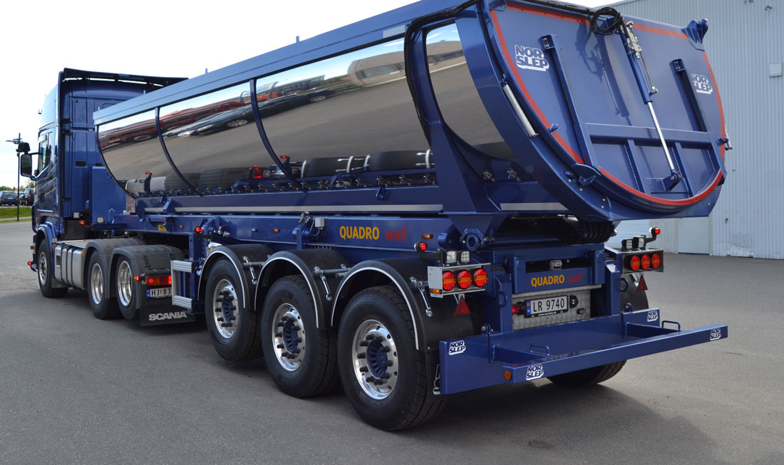 - Treakslet gardinsemitrailer fra tyske Fliegl, med nyheten «Anti Ice System» for nordiske forhold