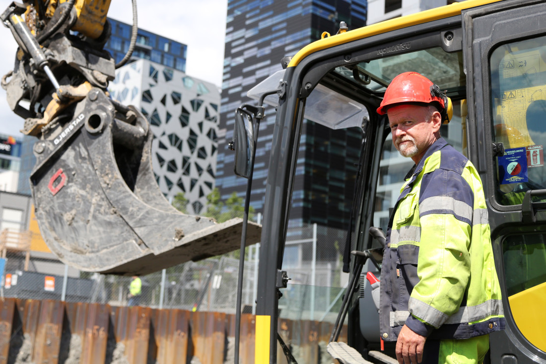 – Vi er fire-fem maskinførere som har holdt på å grave her på tomta i et par måneder nå. Etter at de arkeologiske utgravingene begynte for et par uker siden har det naturlig nok gått litt saktere. Men dette er ikke noe nytt for meg, for jeg var med på stort sett hele Barcode-utgravingen, sier han.