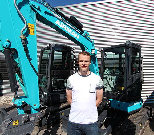 Morten Schou (23) er ansatt i Beck Maskin som produktsjef for kompaktmaskiner.