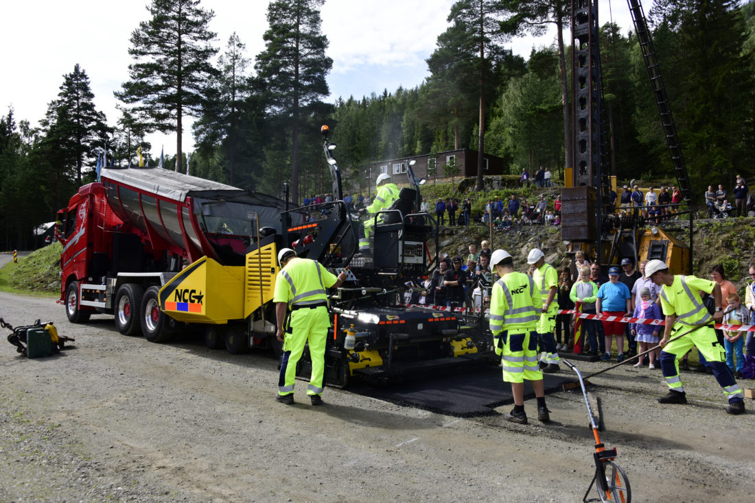 I den forbindelse ble NCC kontaktet for å høre om de kunne stille med folk og utstyr for å demonstrere asfaltlegging for publikum. NCC kastet seg på ballen og møtte opp med både maskiner og mannskap og ikke minst nylaget asfalt på en søndag morgen.