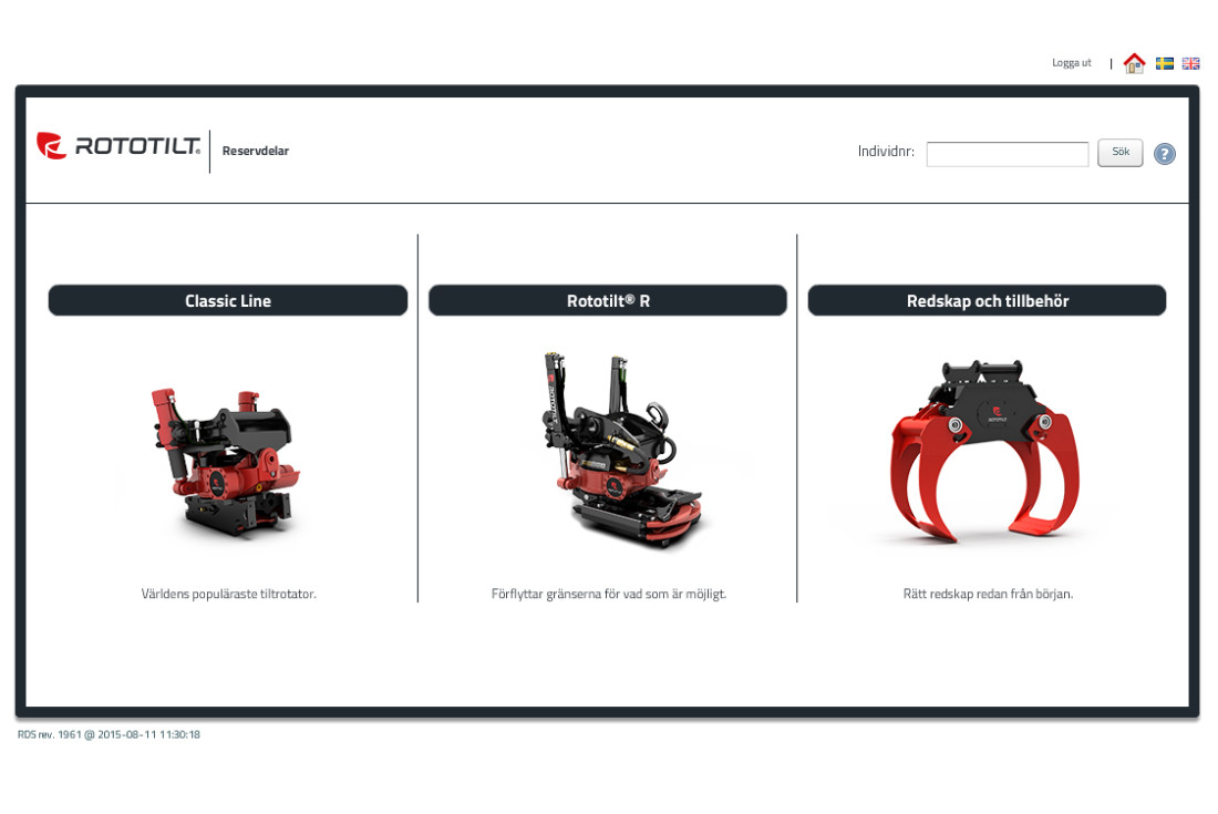 Ved å skrive inn serienummeret sitt får brukeren opp en tilpassede sammenstillingstegninger og reservedeler. Deretter kan kunden bestille den rette delen hos forhandleren sin.
