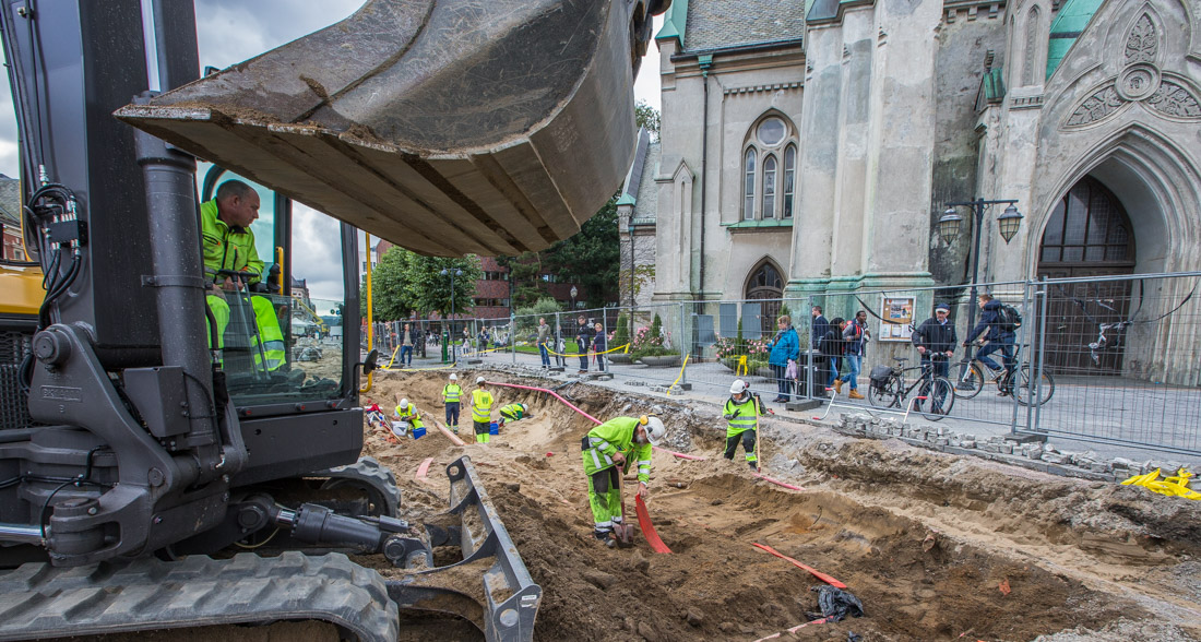 – Vi er spente på hvilke masser vi møter når vi begynner å grave for alvor. Vi skal ned på omkring åtte meter under dagens overflate på torget.