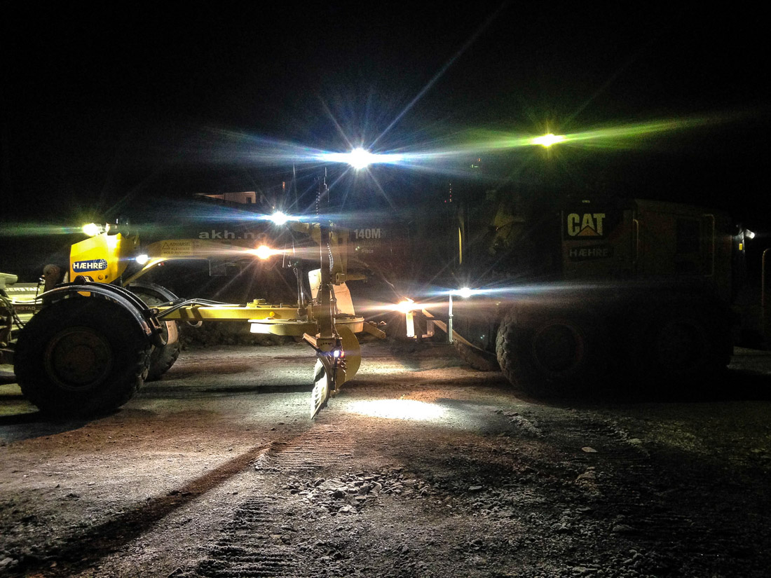 – På en stor beltegraver der man kun sitter og laster spiller det ingen rolle. Der er det ingen finpuss, og da er det bra med det kraftige LED-lyset. Men ikke til finplanering og sånt, sier Østvik.