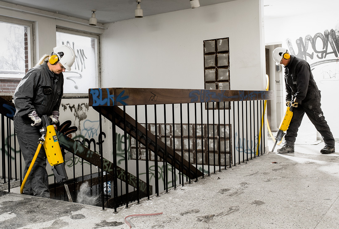 Den veier 25 kilo, men pigger som en på 35. Og bruker bare halvparten så mye luft. Se hvor fornøyd Atlas Copco er med sin nye lufthammer RTEX.