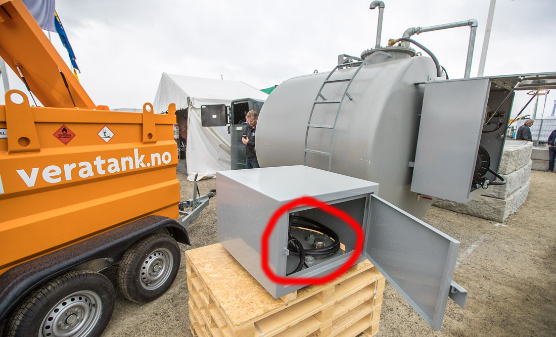 – Det kan også monteres en pumpe og fyllepistol inni hetta, sier Hans Christian Trollsås i Vera Tank AS.