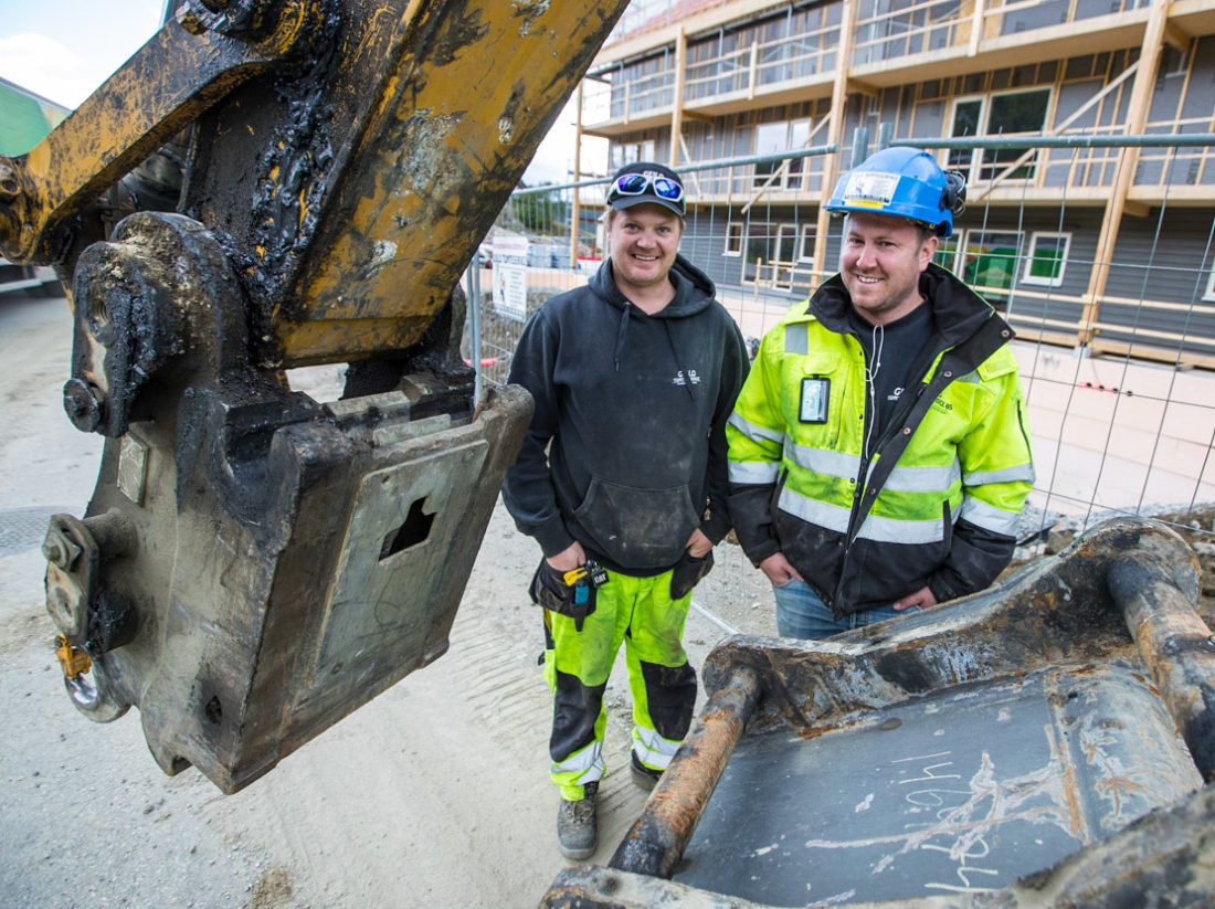 – Å redusere risikoen for å miste skuffer er svært viktig. Vi har mye VA-jobber, med folk som jobber i grøfta under maskinen. Hardlock-festet gir en ekstra sikkerhet når man driver og pukker, sier Høgberg.