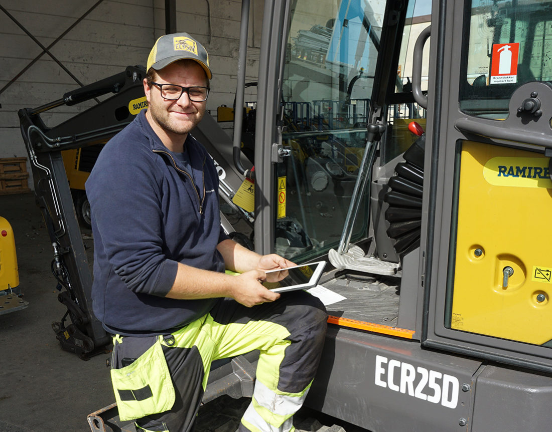 – Dette er helt topp og er mye bedre enn å drive med de papirgreiene, sier utemekaniker Christoffer Flateby hos Volvo Maskin AS.