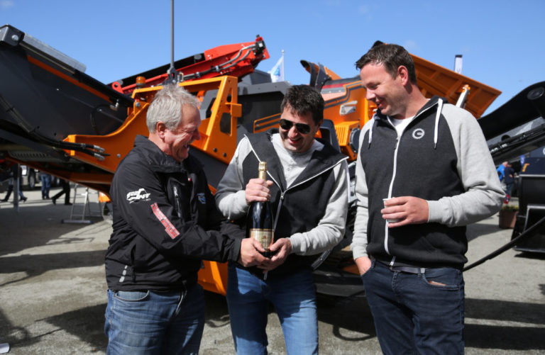 Mineralteknikk fikk besøk av tre MEF-styremedlemmer og konkurrenter på sin stand på MEFA 2019. De endte med å kjøpe hvert sitt 14-tonns sikteverk.