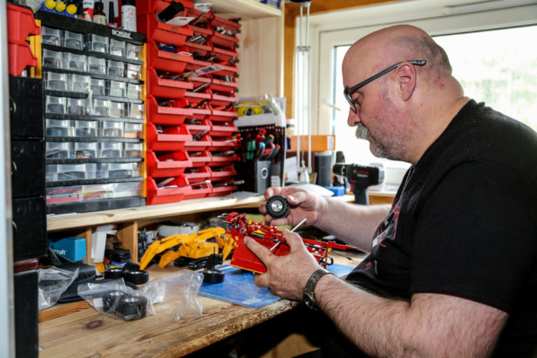 – Det finnes jo ikke modeller av alt, så det hender jeg må lage eller bygge om maskiner. Blant annet måtte jeg fylle ut et hull i en rekke av modeller i forbindelse med at Volvo overtok Samsung. Den aller siste Samsung-maskinen ble det ikke produsert modell av, så jeg kjøpte neste Volvo-versjon, som var nesten lik, og sparkla, pussa og lakkerte den om til den korrekte Samsung-versjonen, og på den måten fikk fylt ut hullet i rekken, forteller han.