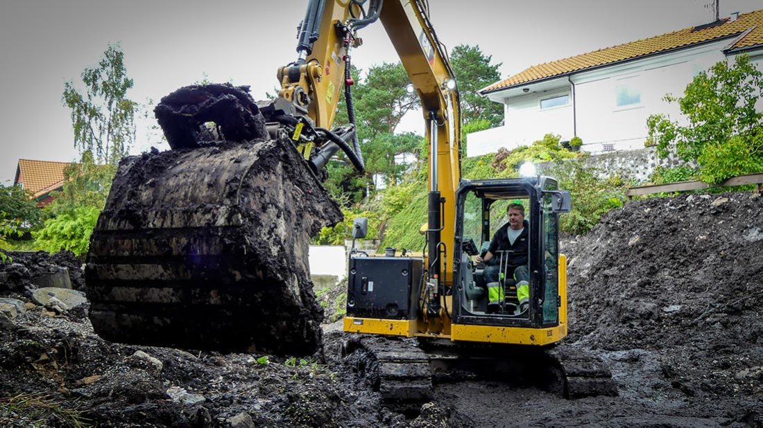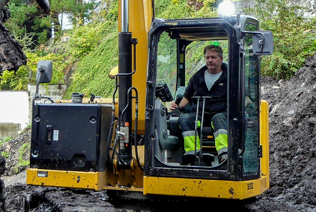 Her – midt oppe i et boligfelt i Os – er Øystein Bøe. Han er daglig leder i Bøe Service As, og den første i Norge som har kjøpt den nye Cat 307.5 graveren. Bergenseren smiler bredt og ønsker oss velkommen. (Annonseartikkel)