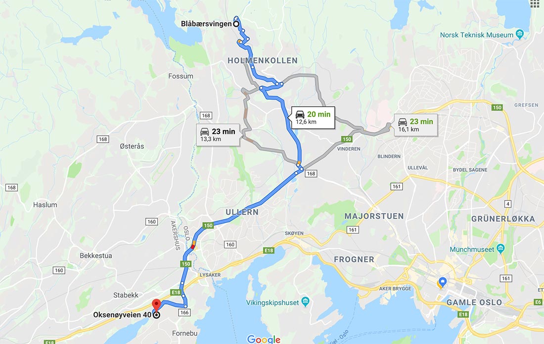 Maskinen skulle lastes opp på en adresse i Holmenkollen og leveres på Fornebu.