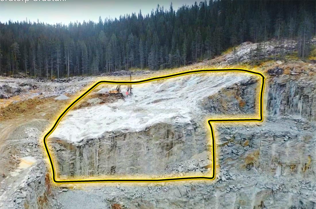 Her blir det 90 000 tonn sprengstein. (Foto: Screenshot fra video)