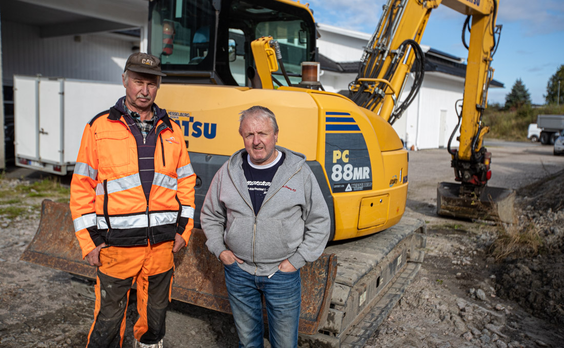 Like etter det potensielt livsfarlige uhellet ringte Egil Holtet til kompis og kollega Roy Pedersen. Vi møter de to karene på tomta der det skjedde. De to erfarne maskinentreprenørene er dypt rystet over det som lett kunne blitt en alvorlig ulykke med tap av menneskeliv.