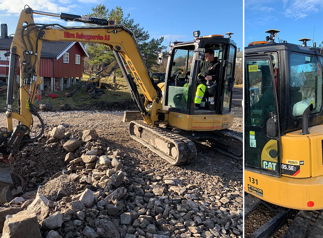 Dette er en av landets minste maskiner med GPS og 3D maskinstyring. En Cat 305.5 med Topcon 3D gravesystem. Den er supernyttig hos Hitra Anleggsservice AS. Der har de også landets første graver med AMV boretårn, fullt integrert mot Topcon 3D maskinstyring. Landets eldste maskinfører med ny Volvo 300 har de muligens også.