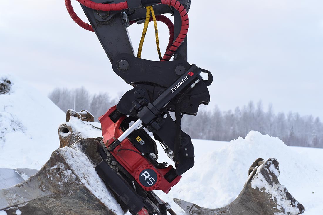 I tillegg liker Ainasoja at han raskt kan sette bort tiltrotatoren og montere redskapen direkte på systemets maskinfeste.