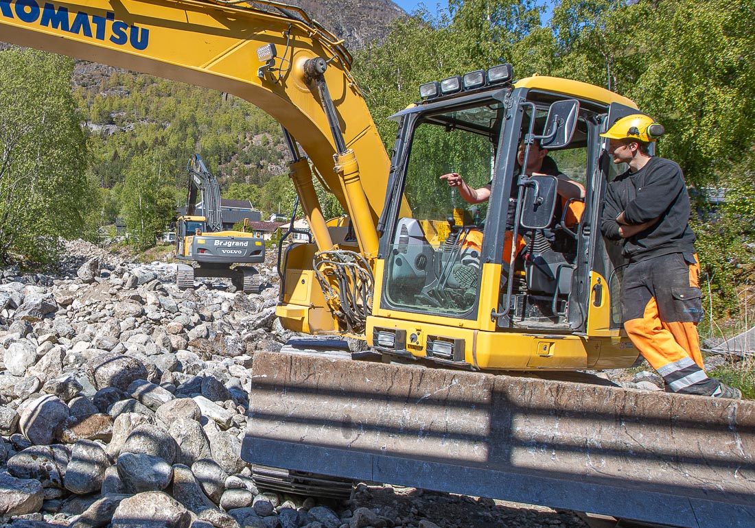 – Vi snakket med tre entreprenører. Brugrand kunne stille på kort varsel, så de har fått jobben. De gjør en veldig god jobb. Vi håper de er ferdige før flommen kommer, sier Øygarden.