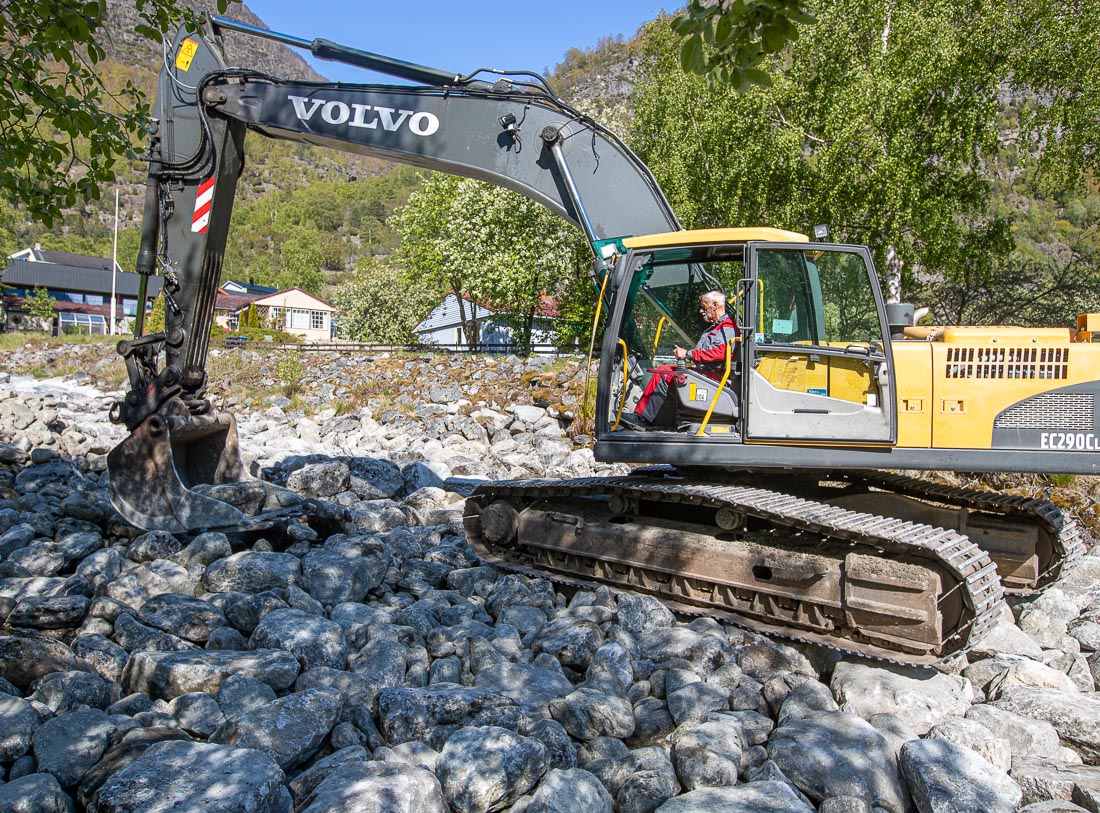 – Dette er et strakstiltak. Det finansieres med midler vi sannsynligvis får fra fylkesmannen for flomsikring. Da har vi en del prosjekter vi setter i gang, sier byggesaksbehandler og byggeleder Arnt Otto Øygarden i Lærdal kommune.