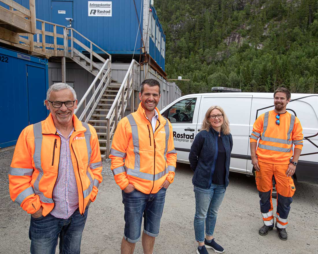 RØSTAD: F.v. Prosjektleder Jon Sellæg, daglig leder Terje Bekkevold, adm-leder Margit Vevassvik og anleggsleder Robin Mandal. (Foto: Jørn Søderholm)