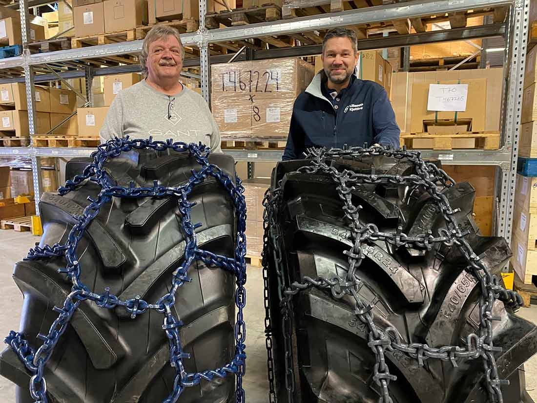 Lilleseth Kjetting gjør det enklere å få på tettlenket kjetting på store traktorer. 9 mm «Easy On» firkantkjetting med Ubrodd.