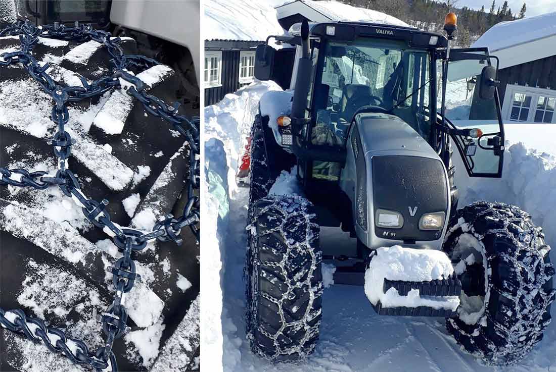 Lilleseth Kjetting gjør det enklere å få på tettlenket kjetting på store traktorer. 9 mm «Easy On» firkantkjetting med Ubrodd.