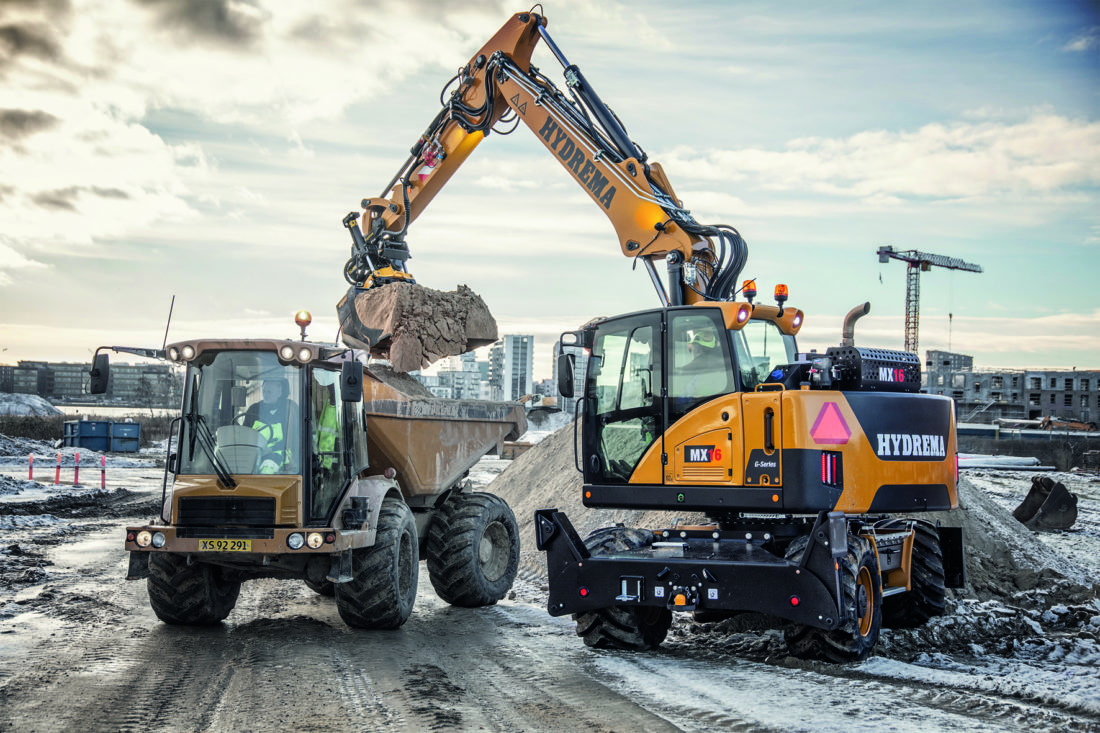 Det utvendige design av maskinen er oppdatert med en ny kombinasjon av de svarte og gule fargene. MX G-serien tilbys også i kundefarger fra fabrikken. (Foto: Hydrema).