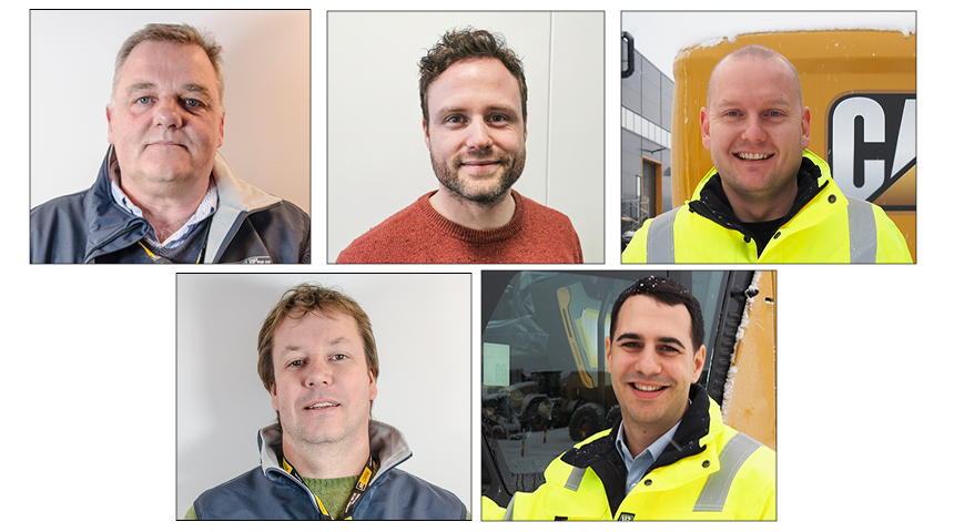 Det nye produktsjef-teamet i Pon Equipment består av Jon Granlund (produktsjef for Cat kompaktmaskiner og minigravere), Fredrik Sætren (produktsjef for Cat hjullastere) Marius Halnes (produktsjef for Cat gravemaskiner), Glenn Thorén (produktsjef Cat paving) og Marcos Gonzalez (produktsjef for Cat teknologi).