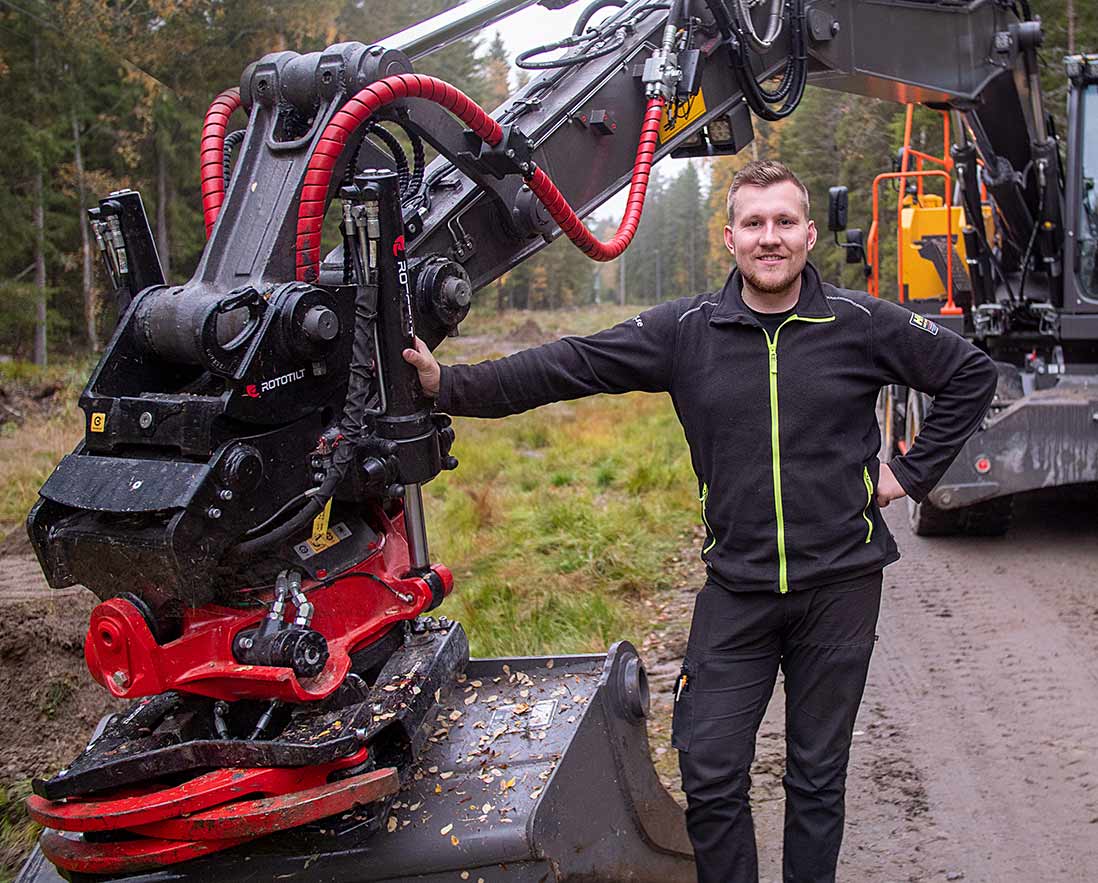 Niklas Björn og hans operatørkolleger har konsekvent valgt å investere i Rototilt både når det gjelder maskinfester, tiltrotatorer og redskap. Mye på grunn av det høye teknologinivået.