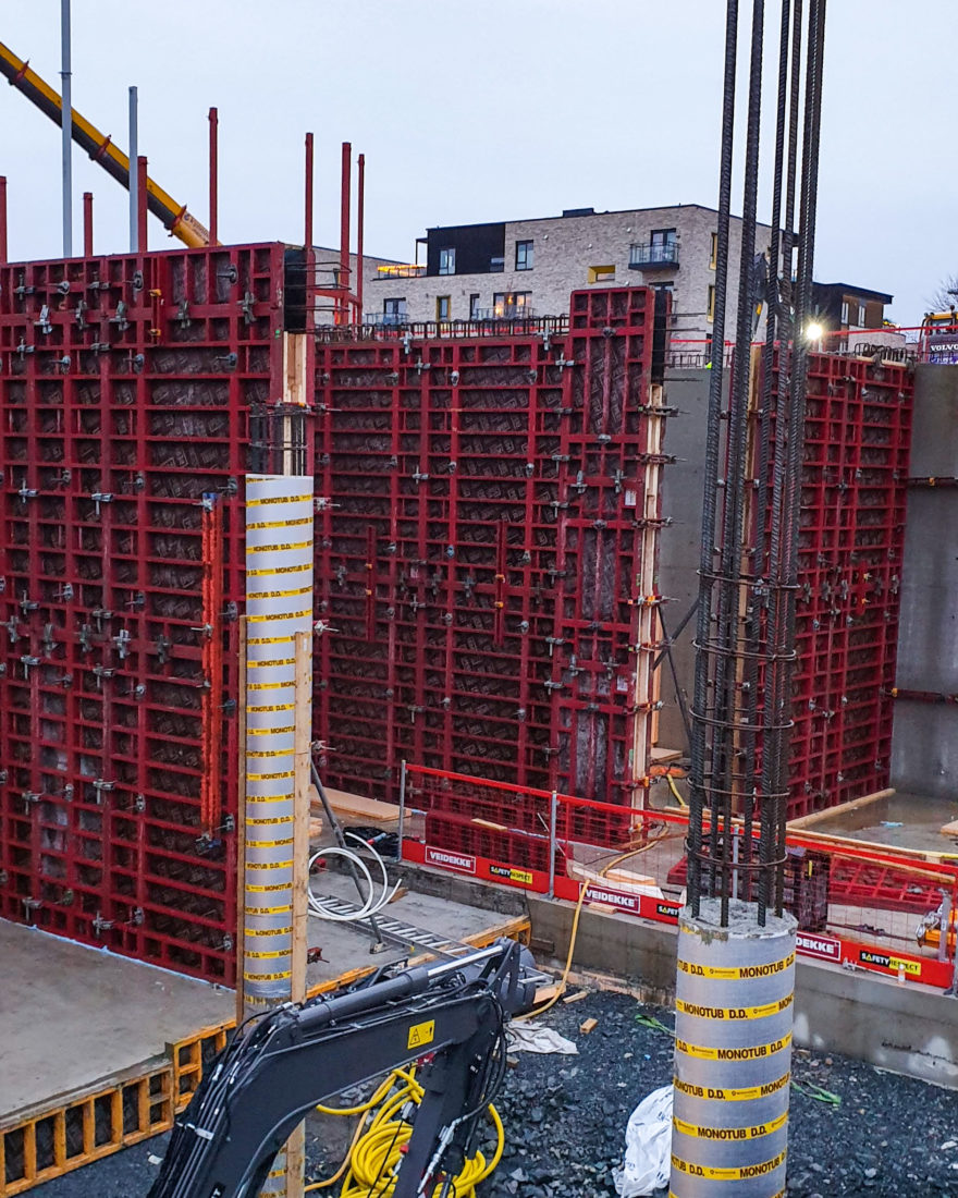 Ved Oksenøya Senter på Fornebu har Veidekke støpt ca. 7000 m3 betong av typen «lavkarbon ekstrem», som har et CO2-utslipp på under halvparten av vanlig betong. For å sikre herdekvaliteten i kaldt vær, har de benyttet maskiner fra HeatWork.