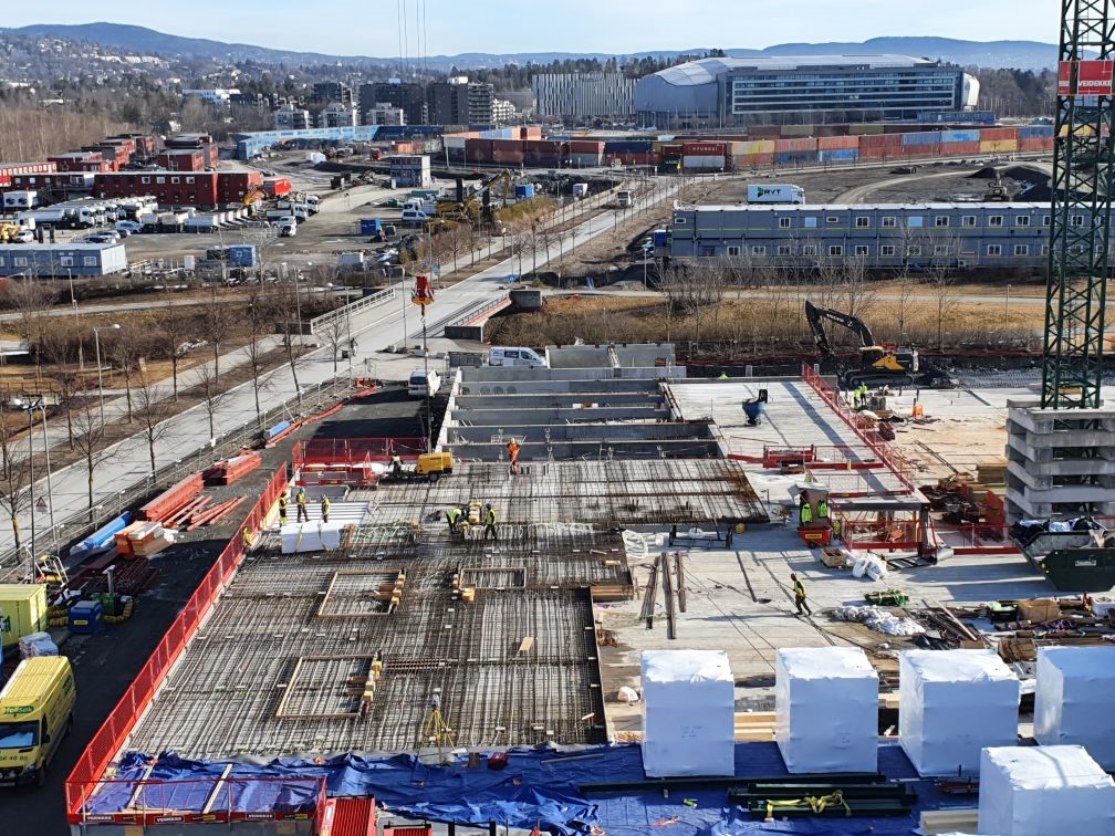 I prosjektet er det så langt støpt rundt 7000 m3 betong, som klarer den strengeste miljøklassen «lavkarbon ekstrem». Denne type betong har et CO2-utslipp som er under halvparten av vanlig betong, og er en viktig del av de høye ambisjonene om bærekraft og miljø for prosjektet. Lavkarbonbetong defineres som betong der det er gjort tiltak for å begrense klimagassutslippet. Betongen utvikler lite varme i seg selv og krever lengre herdetid.