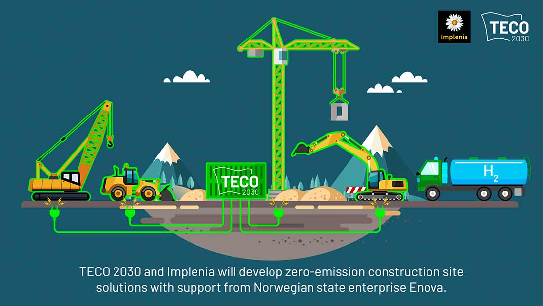 Teco 2030 og Implenia Norge annonserte i april at de vil samarbeide om å utvikle og teste hydrogendrevne løsninger som leverer energi til bygge- og anleggsplasser, og at de hadde søkt om støtte fra Enova til dette formålet.