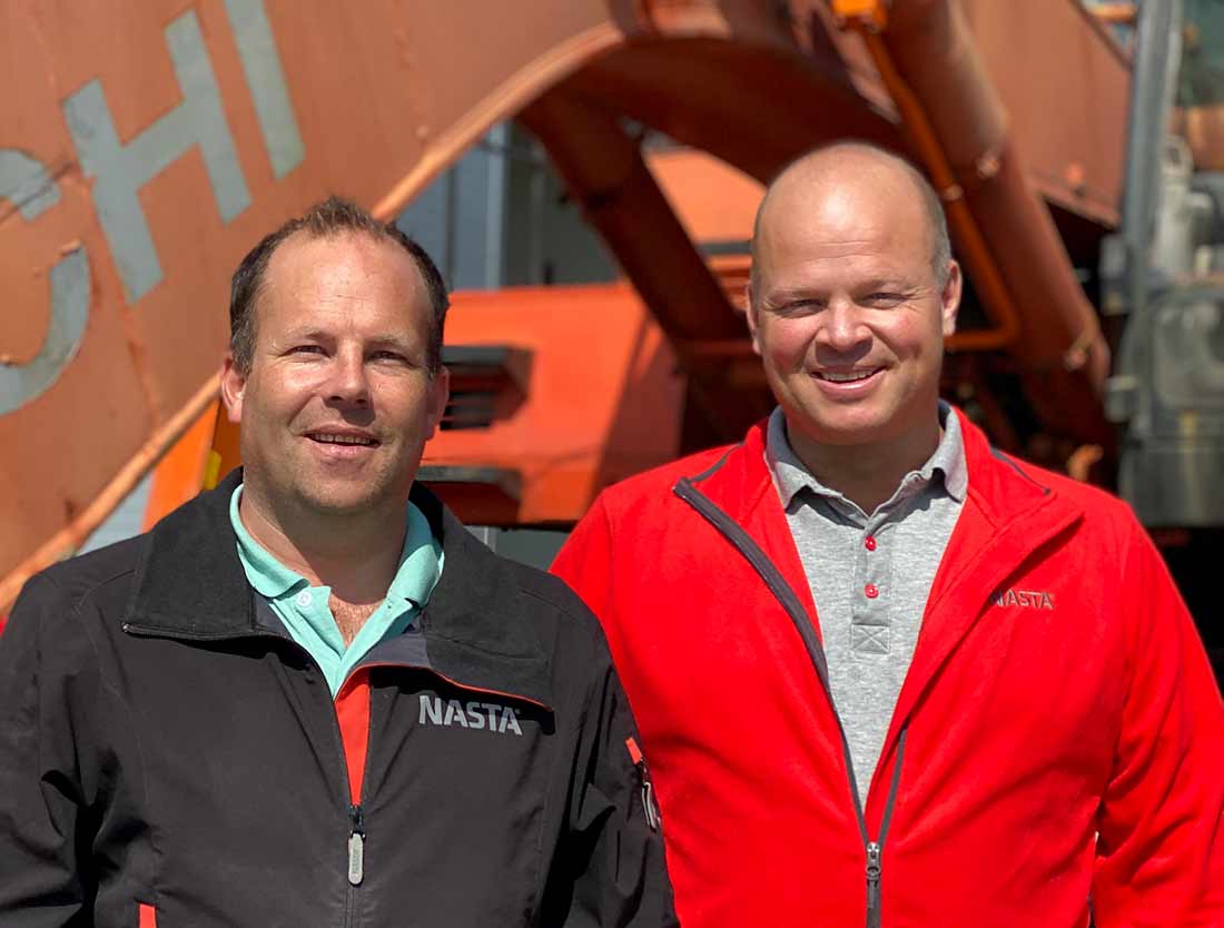 Dette er Tore Sagstuen og Espen Andersen. De selger bruktmaskiner i hos Nasta AS. Én av dem er nettopp ansatt.