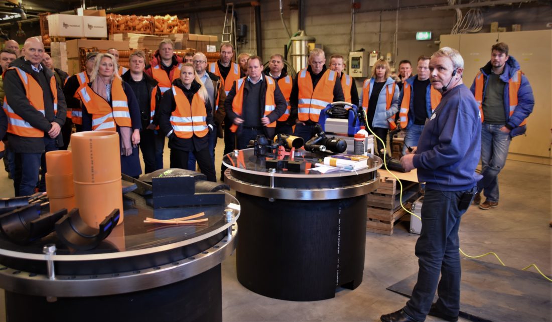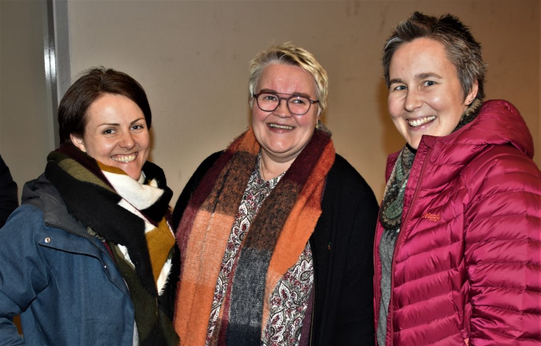 Store smil da Hallingtreff-lederne Borghild T. Folkedal (t.v) og Martina B. Svedahl (t.h) gjorde seg klar til fabrikkbesøk på Hallingplast AS sammen med avdelingsleder Gro Gaarder i VA-avdelingen i Indre Østfold kommune i 2020. Nå er smilene borte. (Foto: Odd Borgestrand).