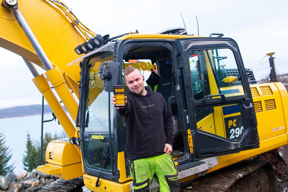 Mathias Pedersen er maskinfører i selskapet og bruker SmartDok daglig. Akkurat nå er han som de fleste av selskapets maskinførere på plass på Solneset for å gjøre grunnarbeidet ferdig.