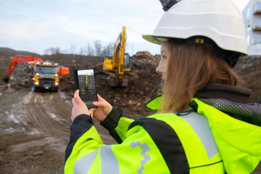 – Alle sjåførene tar bilder av utført arbeid. Bildene kobles til korrekt prosjekt og kan både tegne og skrives på før de sendes inn, forteller Nina.