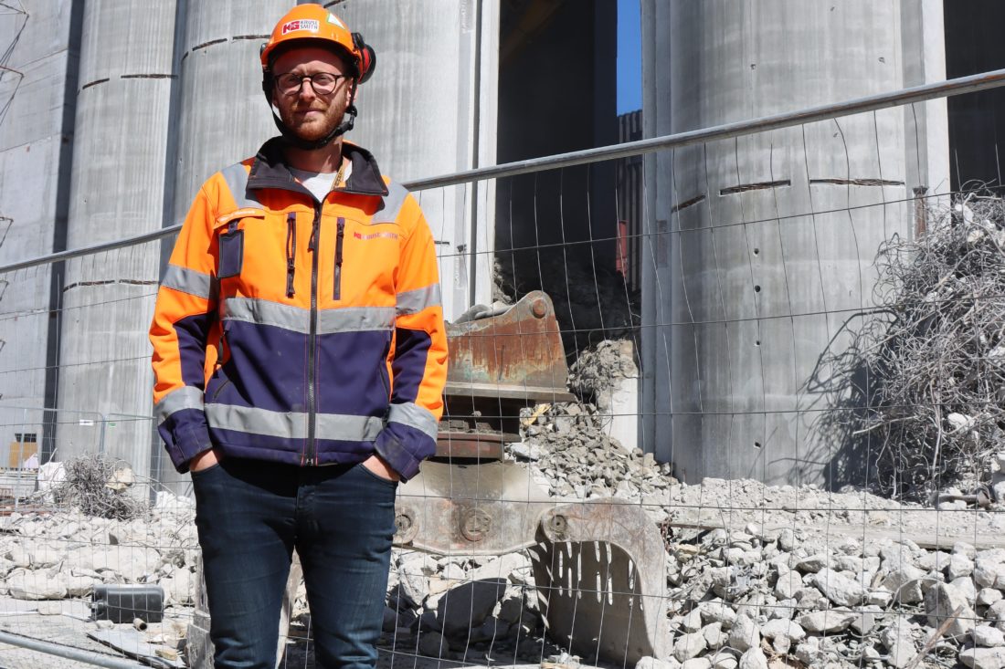 – Vi har flyttet hele bæringen ut på nye fundamenter og ny betong, og det har vært en utfordrende del av prosjektet, sier Simon Hartveit, HMS-leder og sjef for logistikk på byggeplassen.