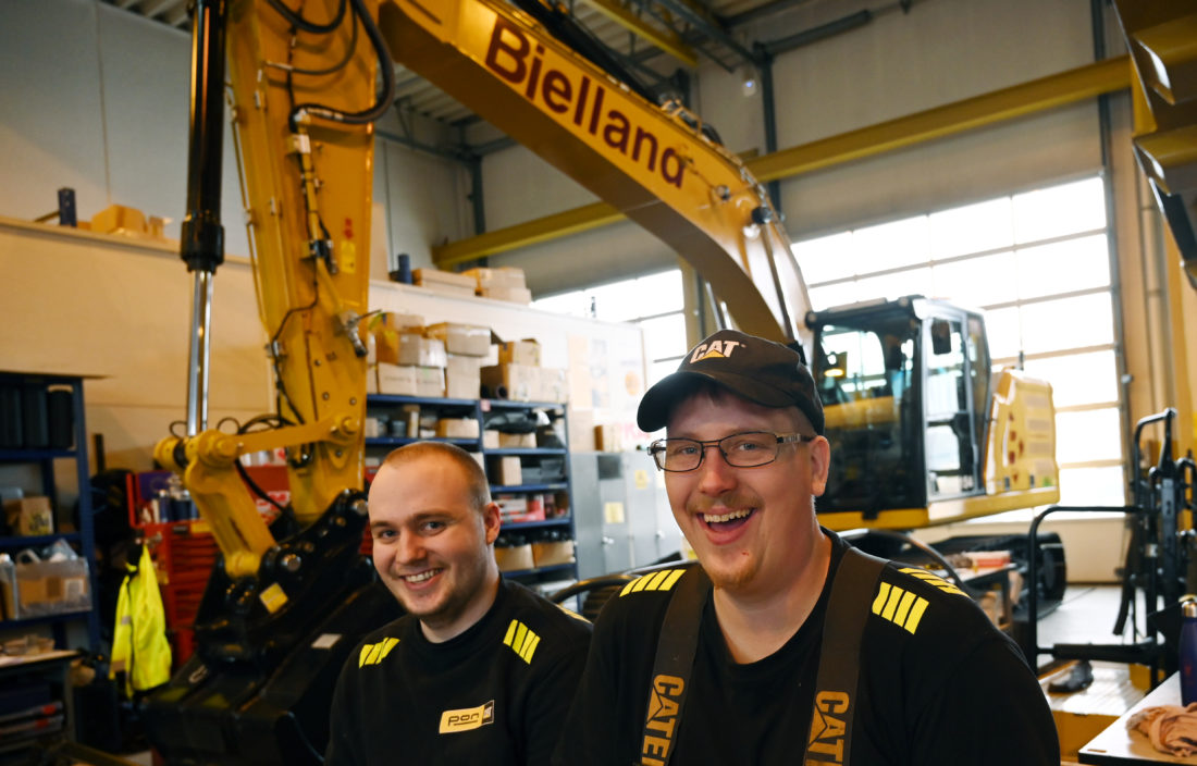 På Pon Equipments verksted i Sandnes monterer mekanikerne Stian Vestre og Christer Jonassen batteriene og styringssystemene på en 20-tonns elektrisk gravemaskin. Den skal brukes på den siste kontrakten Statens vegvesen tildelte entreprenøren Bjelland AS.