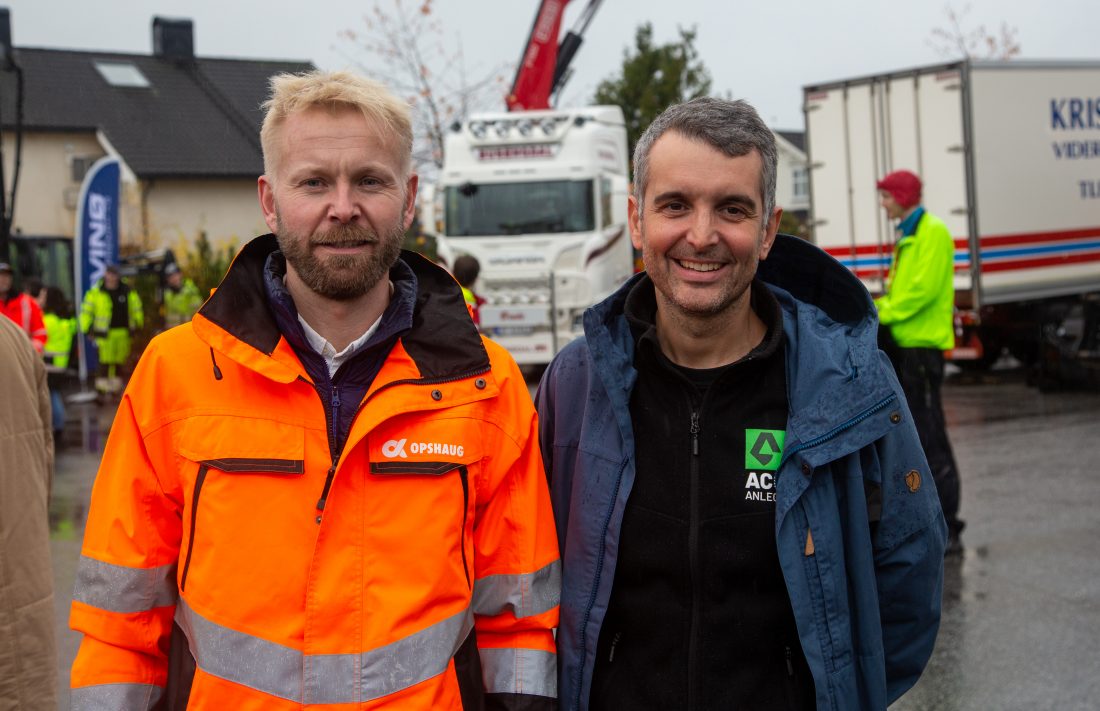 Henning Sunde i OKAB og avdelingsleder ved skolen, Marte Brandsegg, var godt fornøyde med anleggsdagen, men legger ikke skjul på at det er behov for flere skoleplasser i anleggsteknikk. (Foto: Runar F. Daler)