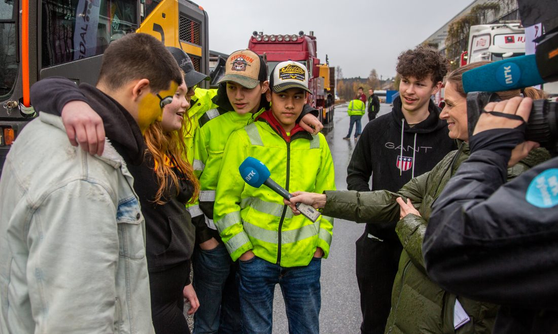 Anleggsdagen var interessant også for mediene. Her blir en gruppe elever intervjuet av NRK. (Foto: Runar F. Daler)