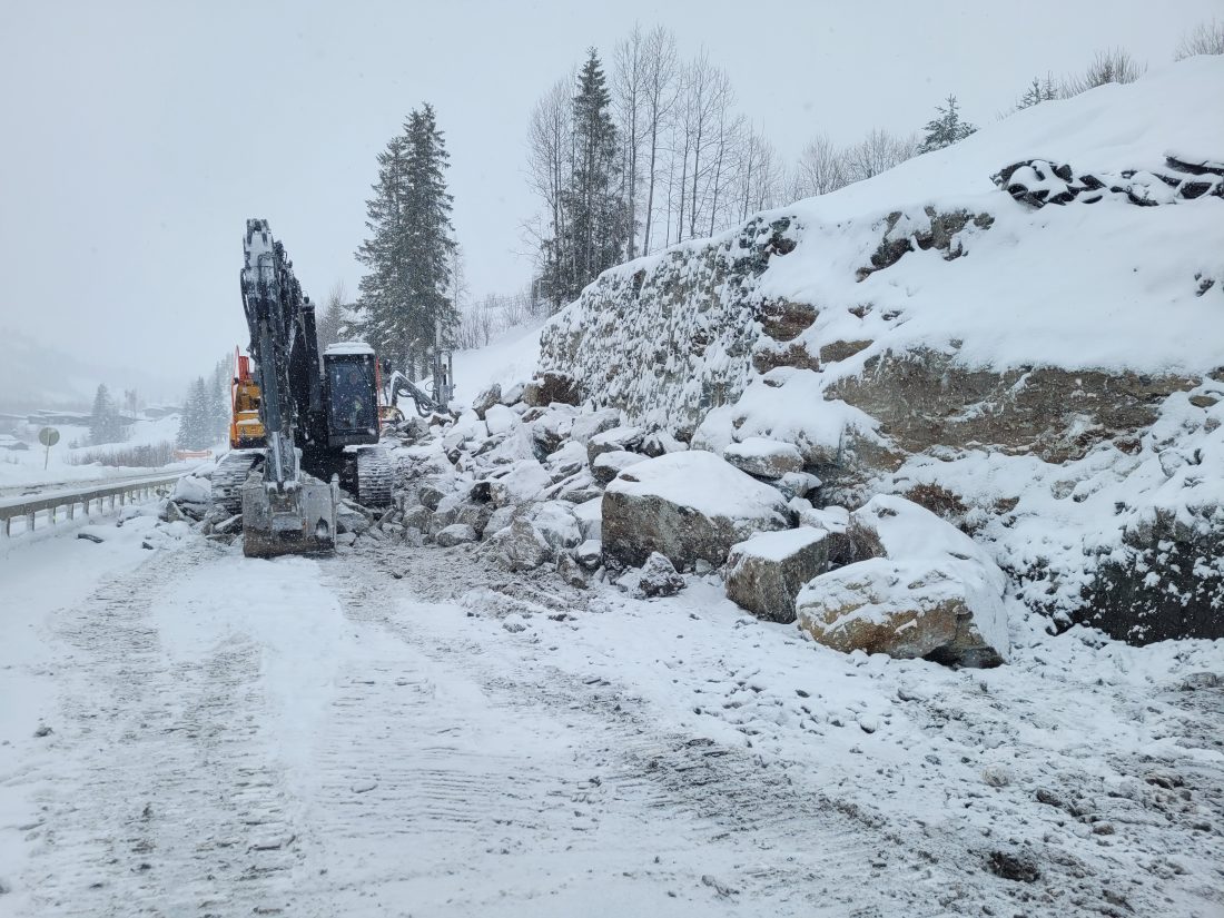 Rekordstore snømengder til tross: Anlegg Øst AS har fortsatt veiarbeidene på rv. 52 i Hemsedal mellom Trøim og Vestland grense i januar.