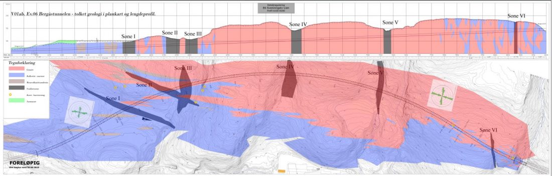 Før tunnelen ble påbegynt ble det utført grunnundersøkelser av området i flere omganger. Tolkingen av undersøkelsene tilsa at det ville være fjell av dårlig kvalitet i denne delen av tunnelen. Men selv om massene er så harde at de kan forveksles med dårlig fjell når det bores i dem, har de ikke fjellets styrke. Av hensyn til arbeidernes sikkerhet, må denne delen av tunnelen derfor drives forsiktig med høy grad av sikring.