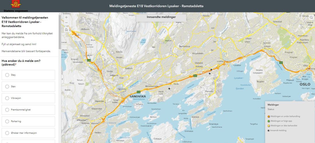 Den kartbaserte meldingstjenesten inngår i et større arbeid med å sikre Veivesenets naboer og andre kunder enkle og effektive kommunikasjonskanaler i planleggingsprosesser og byggearbeider, skriver etaten i en pressemelding.