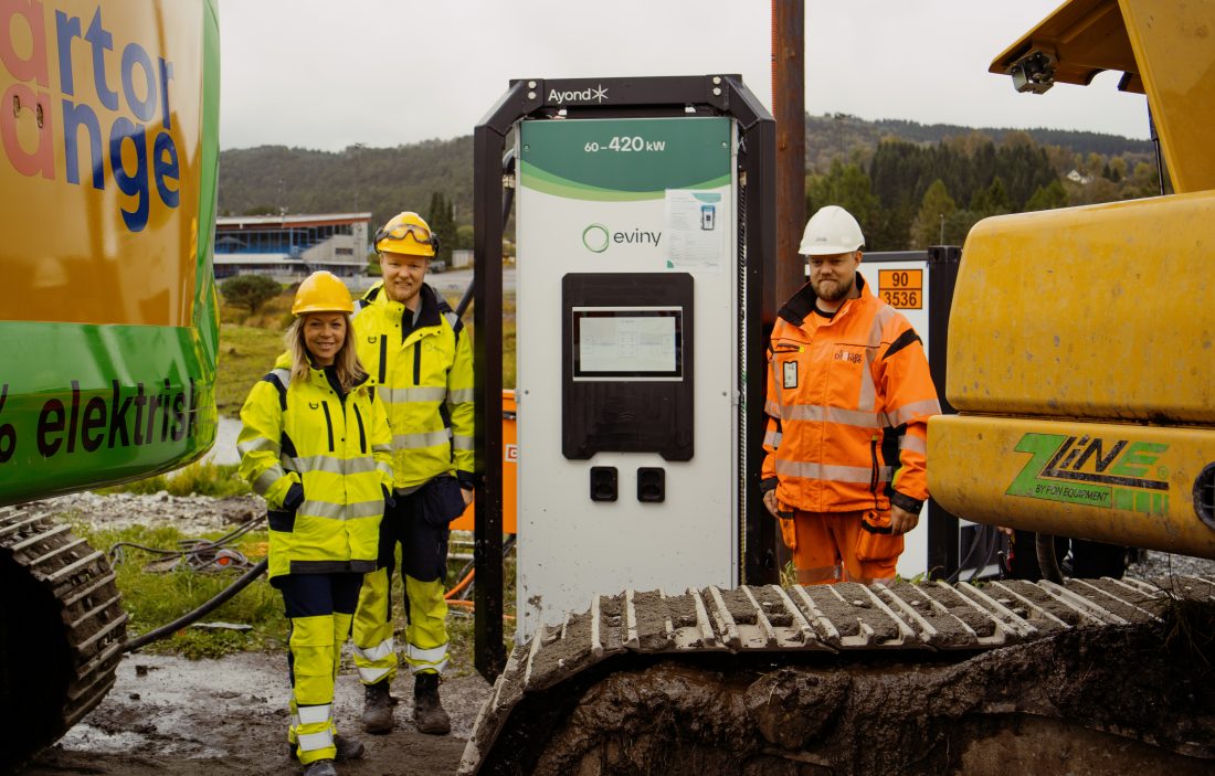 Eviny tester ut en ny norskprodusert lynlader på 420 kW. Den skal være raskest i Europa og skal gjøre det enklere å ta i bruk større anleggsmaskiner på utslippsfrie byggeplasser.