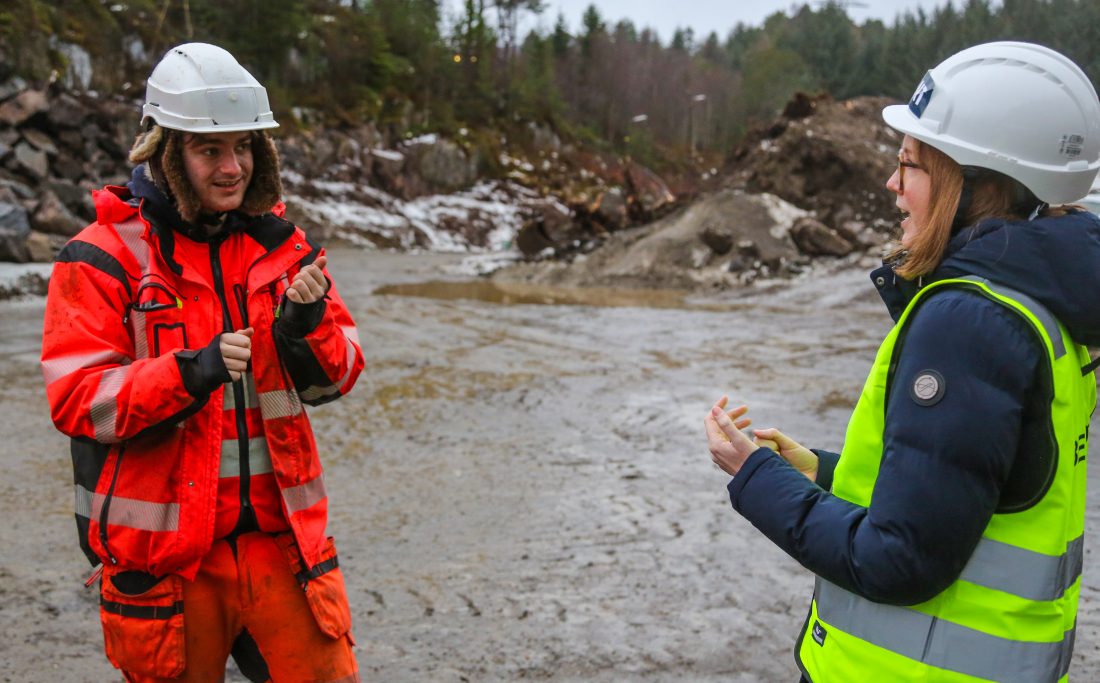 – Hvis man snakker sakte og tydelig, kan jeg lese en del på leppene, og hvis man roper høyt, kan jeg høre noe, men ellers er jeg avhengig av tegnspråk eller tolker, forteller Joar via tegnspråktolkene inne på brakkeriggen til HENT, som er hovedentreprenør på prosjektet.